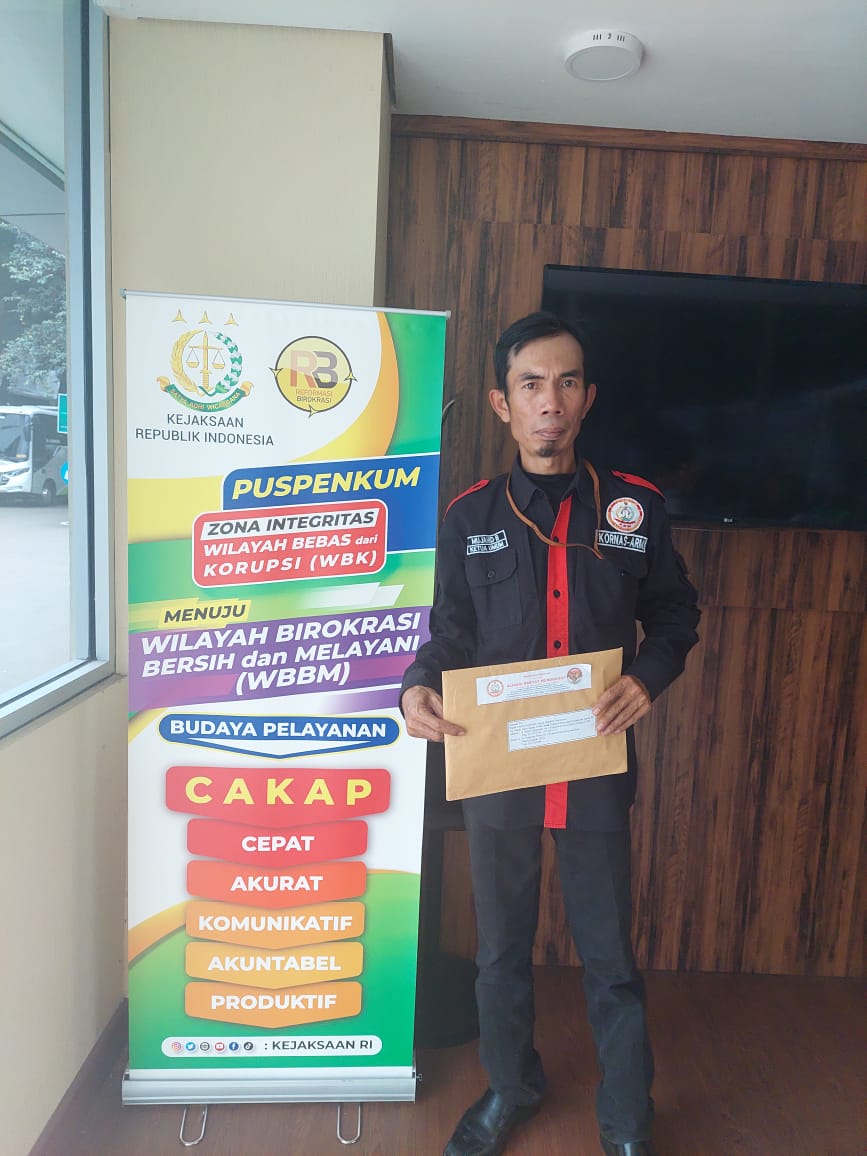 Foto: Ketua Umum ARM Furqon Mujahid Bangun saat menyerahkan laporan berikut alat bukti ke Kejaksaan Agung Republik Indonesia.(Ist)
