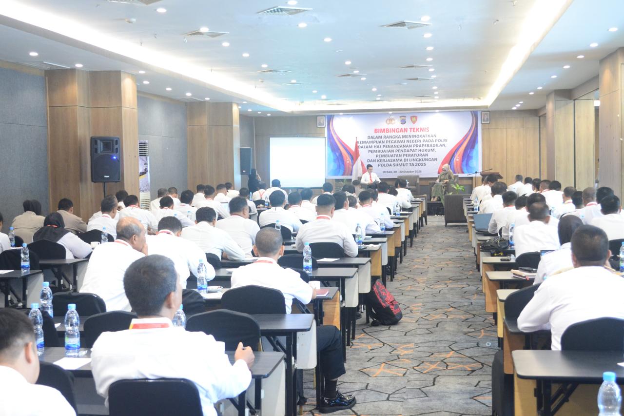 Kegiatan yang dilaksanakan di Hotel AIHO Medan ini diikuti oleh 70 personel dari berbagai fungsi hukum, operator administrasi hukum, serta perwakilan dari Bidkum dan 7 Satker Polda Sumut meliputi Irwasda, Biro Ops, Ditreskrimum, Ditreskrimsus, Ditresnarkoba, Ditresiber, dan Bidpropam. Rabu (22/10/2025)