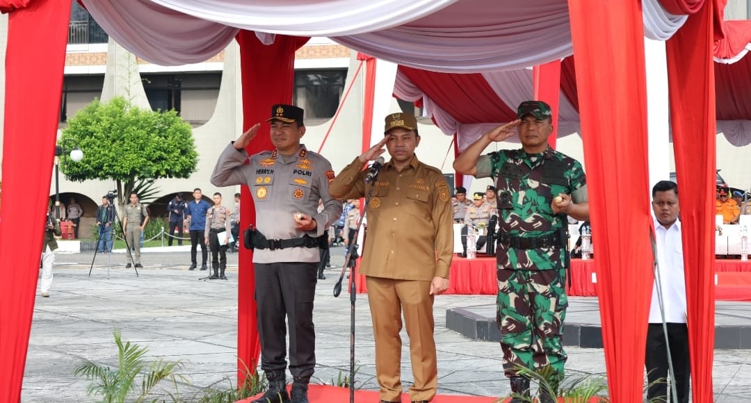 Danrem 031/WB Brigjen TNI Sugiyono mendampingi Gubernur Riau H. Abdul Wahid, S.Pd.I., M.Si bersama Kapolda Riau Irjen Pol Dr. Hery Herjawan ,S.I.K., M.H., M.Hum, dalam pelaksanaan Apel Kesiapan Penyelenggaraan Jambore Karhutla Tahun 2025.(Foto:Ist/Timelinnewsidn/dokpri/Pen)