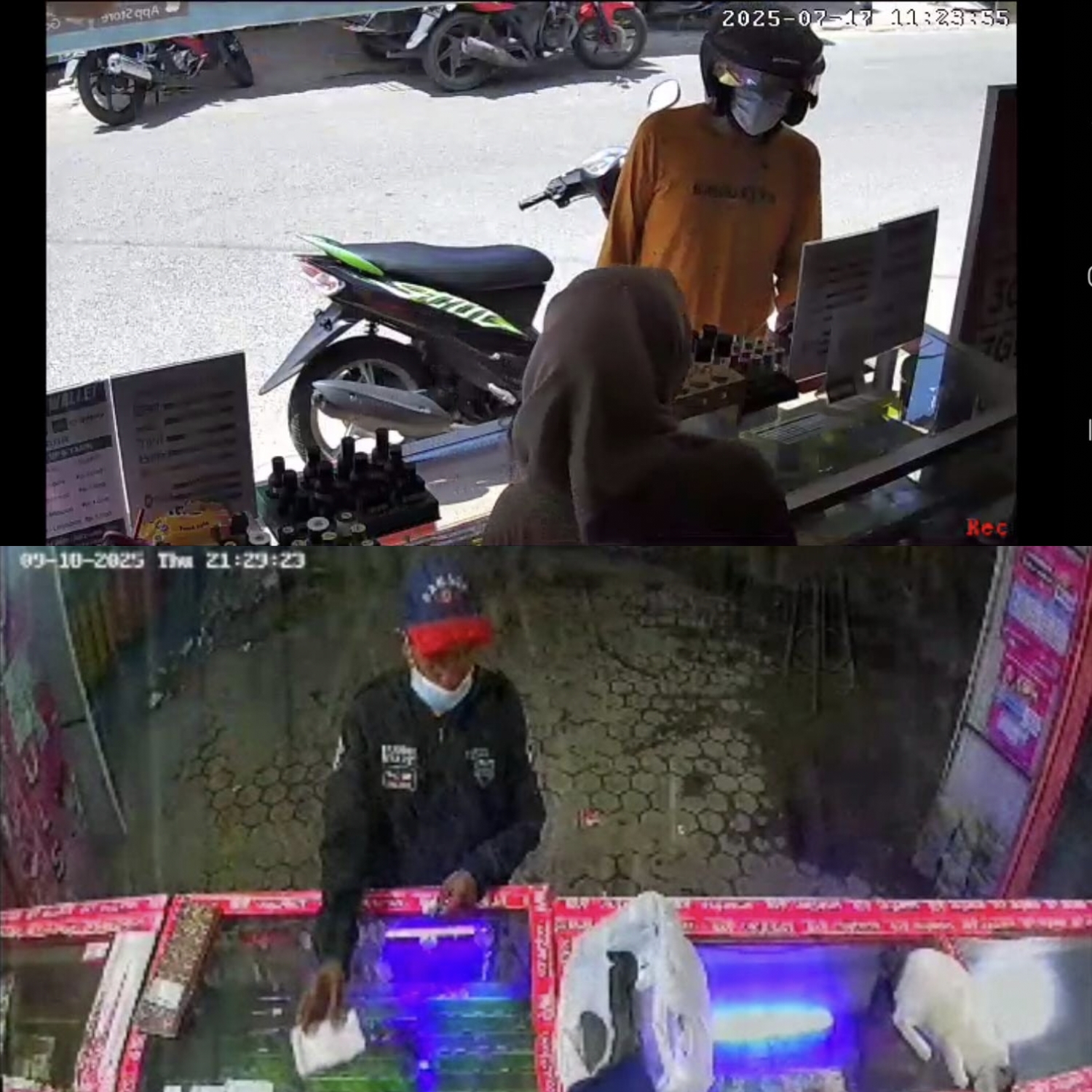 Foto : Para pelaku terekam CCTV-nya Konter Pulsa. (TIME LINE NEWS IDN)