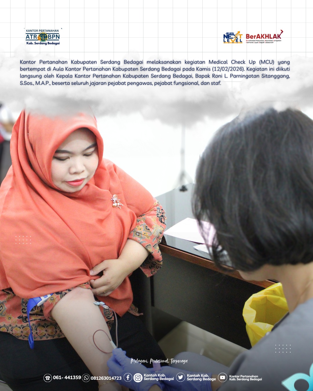 Serdang Bedagai | TIME LINE NEWS IDN.com,- Kantor Pertanahan Kabupaten Serdang Bedagai melaksanakan kegiatan Medical Check Up (MCU) yang bertempat di Aula Kantor Pertanahan Kabupaten Serdang Bedagai pada Kamis (12/02/2026).