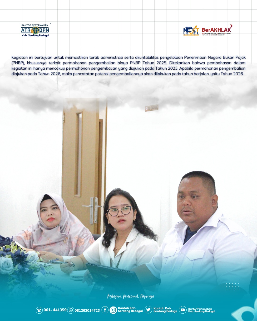 Kegiatan ini bertujuan untuk memastikan tertib administrasi serta akuntabilitas pengelolaan Penerimaan Negara Bukan Pajak (PNBP), khususnya terkait permohonan pengembalian biaya PNBP Tahun 2025.