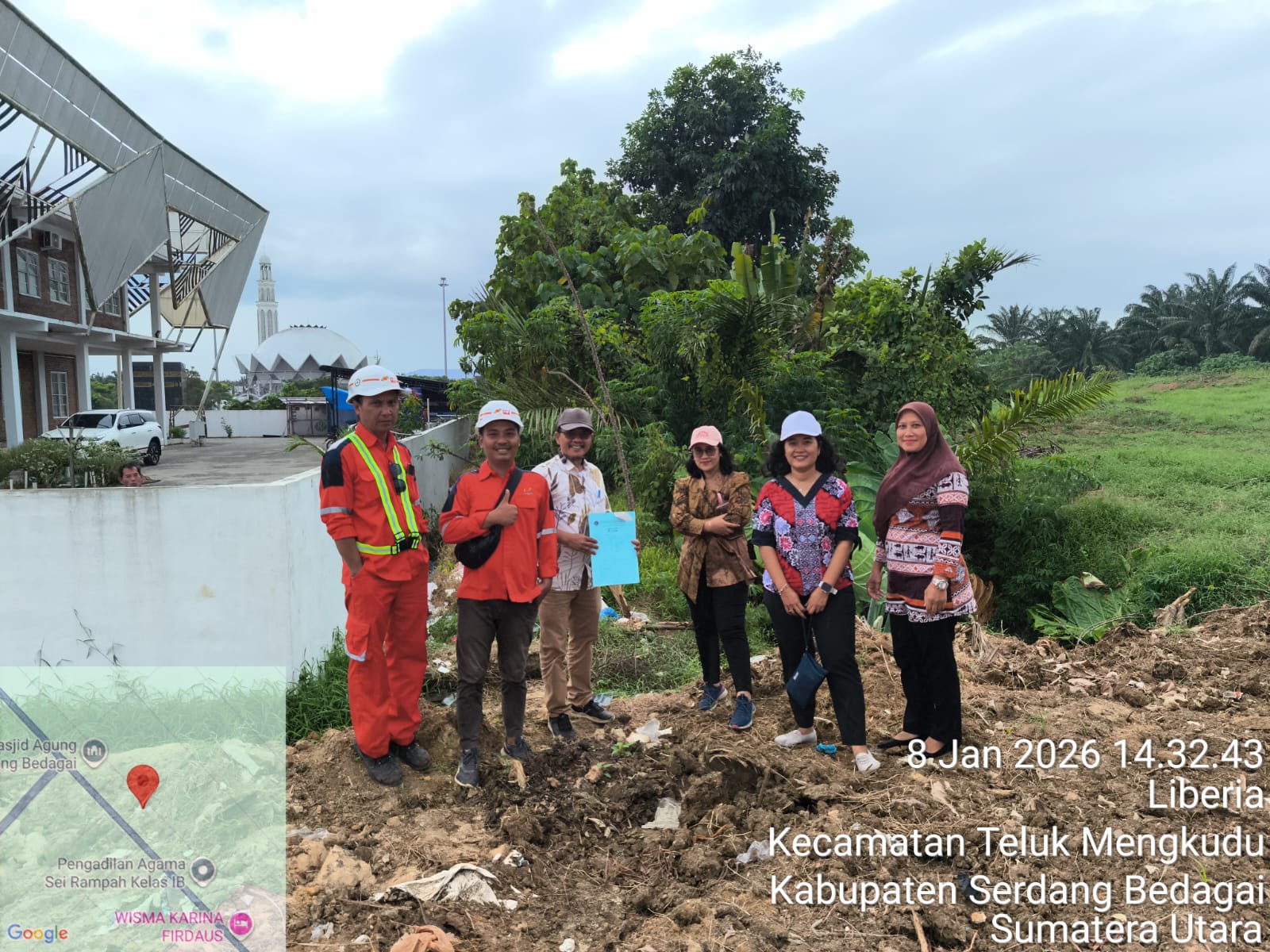 Serdang Bedagai – Kantor Pertanahan Kabupaten Serdang Bedagai melaksanakan kegiatan tinjau lapang Tim Panitia Persetujuan Kesesuaian Kegiatan Pemanfaatan Ruang (PKKPR) Di Desa Liberia Kec. Teluk Mengkudu Kabupaten Serdang Bedagair, pada Kamis(08/01/2026).
