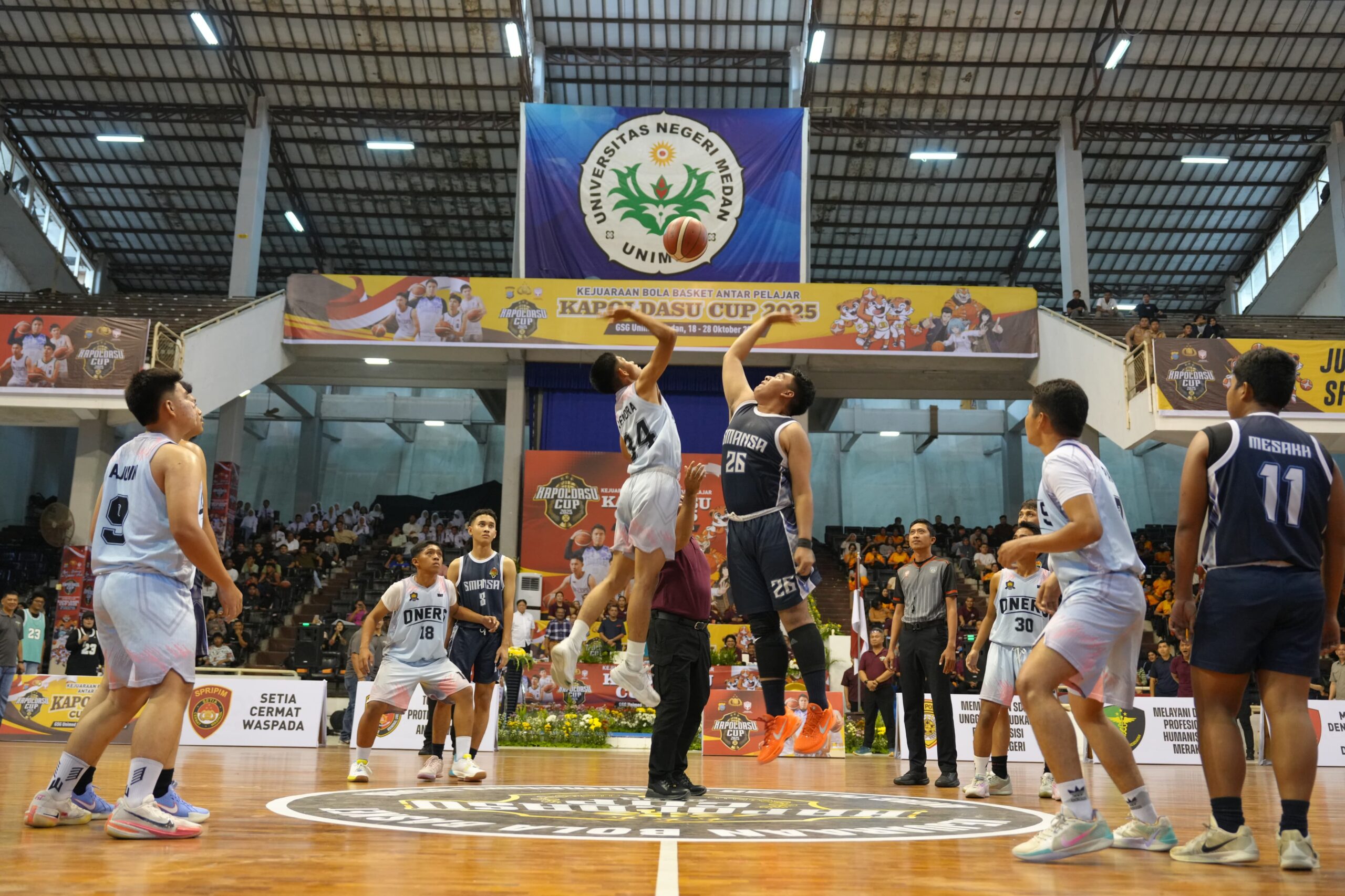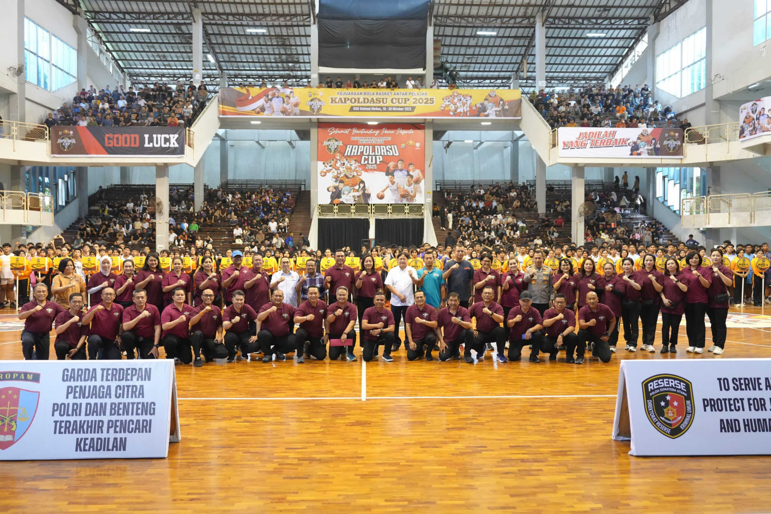 Medan | TIME LINE NEWS IDN.com,– Suasana Gedung Serba Guna Universitas Negeri Medan (UNIMED) tampak meriah pada Sabtu (18/10), saat Kapolda Sumatera Utara Irjen Pol. Whisnu Hermawan Februanto secara resmi membuka Kejuaraan Bola Basket Antar Pelajar “Kapoldasu Cup 2025”.