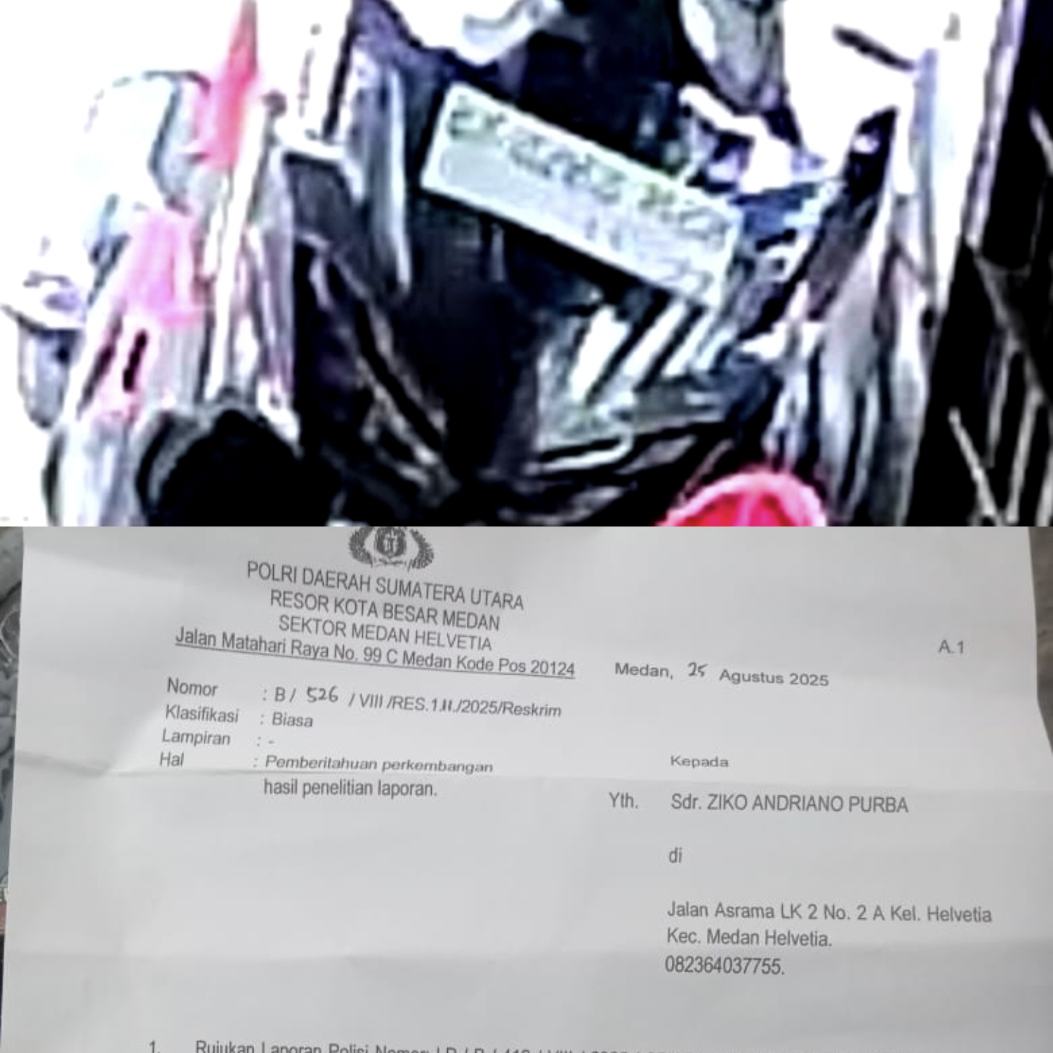 Berdasarkan atas laporan sebelumnya, POLSEK Medan Helvetia melalui Reskrim telah merespon laporan masyarakat dengan menerbitkan surat pemberitahuan hasil LP dengan nomor: B/526/VIII/RES.1.II/2025.