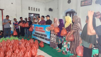 Foto : KNCI Salurkan 110 paket sembako dan 120 makanan siapnsaji untuk 110 Keluarga Terdampak Banjir di Hamparan Perak.(Ist)