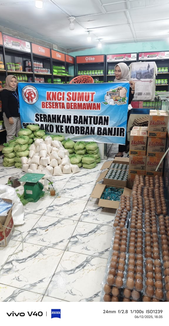 110 Paket Sembako Disalurkan untuk Warga. Dalam aksi kemanusiaan ini, KNCI Di wakilkan sekjend KNCI Budi Gerald dan Bendahara KNCI Medan Andi menyalurkan 110 paket sembako berisi beras, minyak makan,gula, sarden, Pop Mie, dan Indomie, telur. Bantuan tersebut diberikan untuk membantu memenuhi kebutuhan dasar warga yang aktivitasnya masih terganggu akibat banjir.