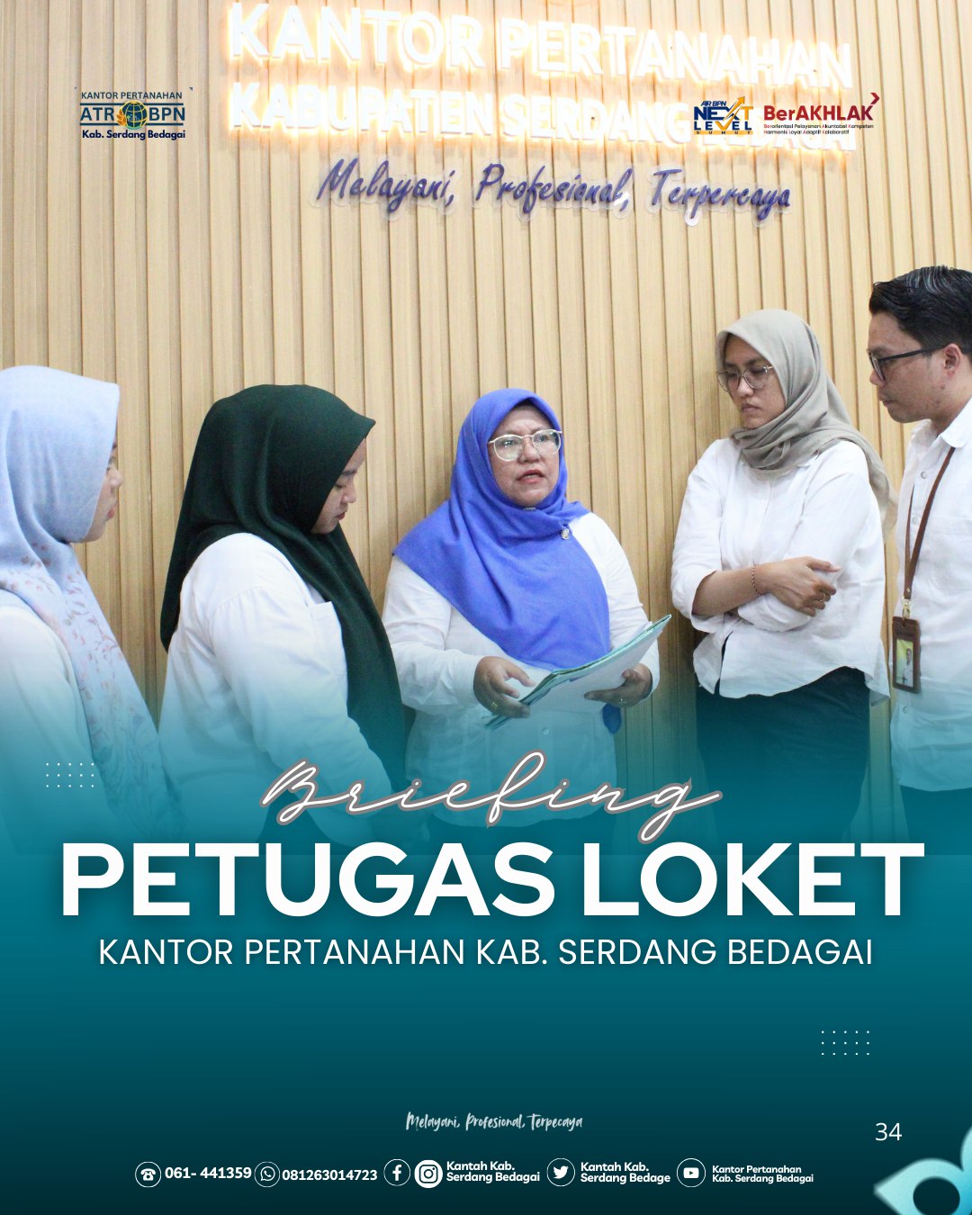 Serdang Bedagai | TIME LINE NEWS IDN.com,- Telah dilaksanakan kegiatan briefing petugas loket layanan bersama Ibu Juriah Siagian, S.H., selaku Koordinator Kelompok Substansi Penilaian Pengadaan dan Pencadangan Tanah, yang bertempat di Kantor Pertanahan Kabupaten Serdang Bedagai. Kegiatan ini dilaksanakan sebagai upaya penguatan koordinasi internal serta penyamaan pemahaman bagi petugas loket layanan dalam melaksanakan tugas dan fungsi pelayanan kepada masyarakat.