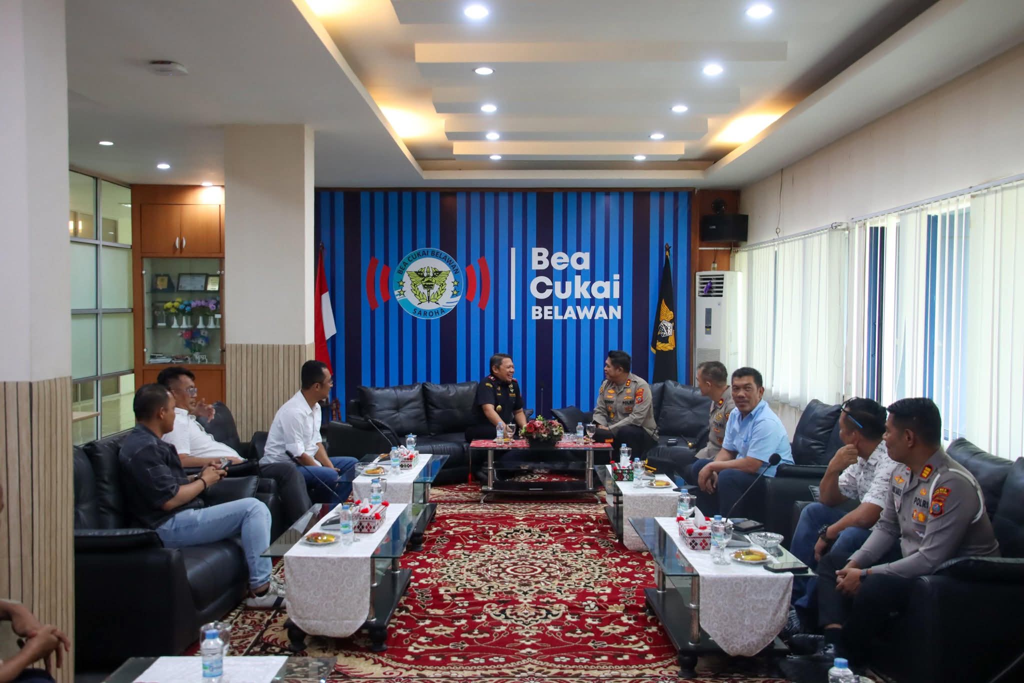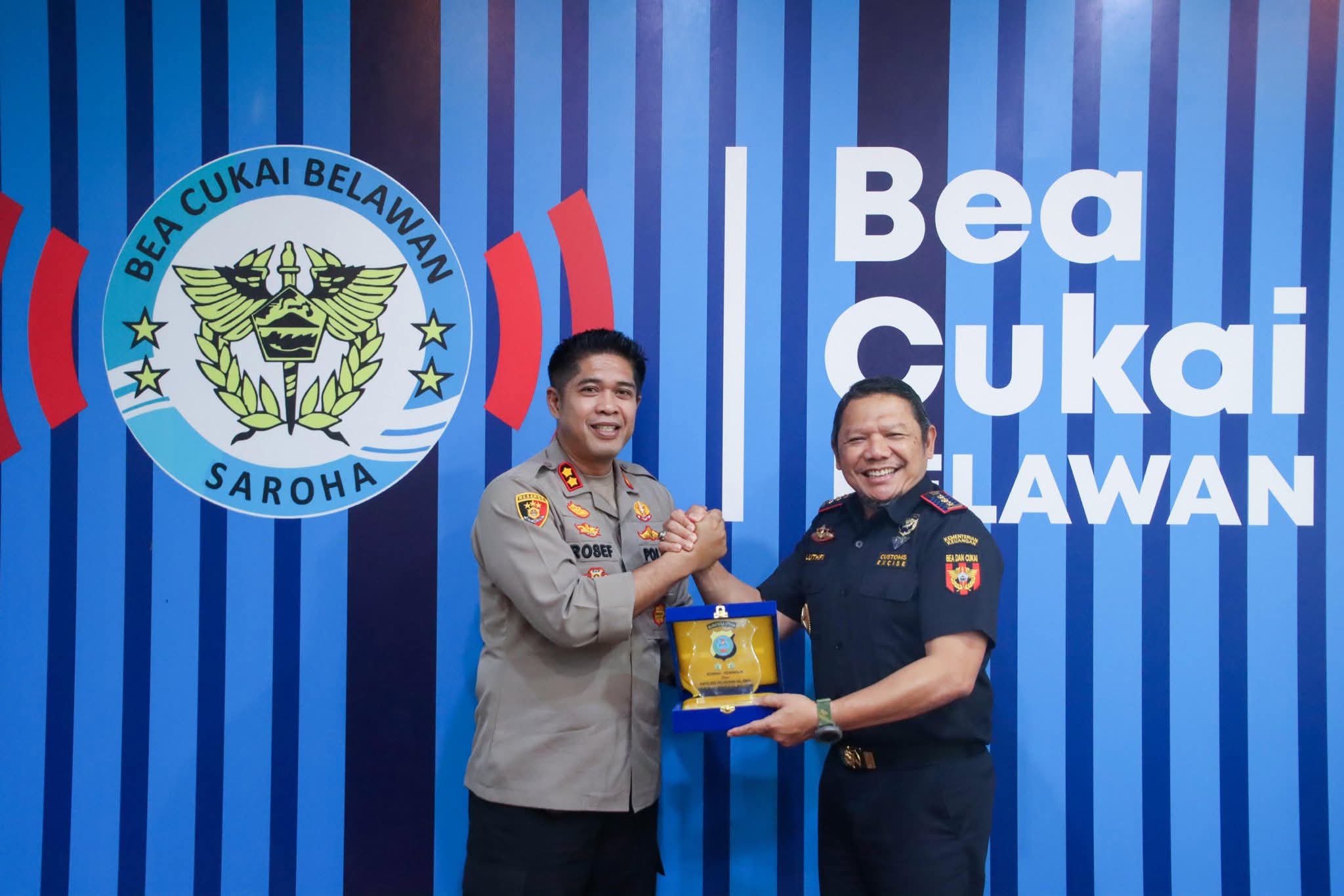 BELAWAN | TIME LINE NEWS IDN.com,-Kapolres Pelabuhan Belawan AKBP Rosef Efendi, S.I.K., M.H., CPHR, disambut Ahmad Luthfi kepala bea cukai Belawan , melaksanakan kegiatan silaturahmi ke Kantor Bea dan Cukai Belawan pada Kamis, 22 Januari 2026. Kunjungan ini dilakukan sebagai upaya mempererat hubungan kerja sama serta meningkatkan sinergitas antarinstansi dalam mendukung pelaksanaan tugas masing-masing, khususnya dalam menjaga keamanan dan ketertiban di wilayah Pelabuhan Belawan. Jumat (23/1/2026)