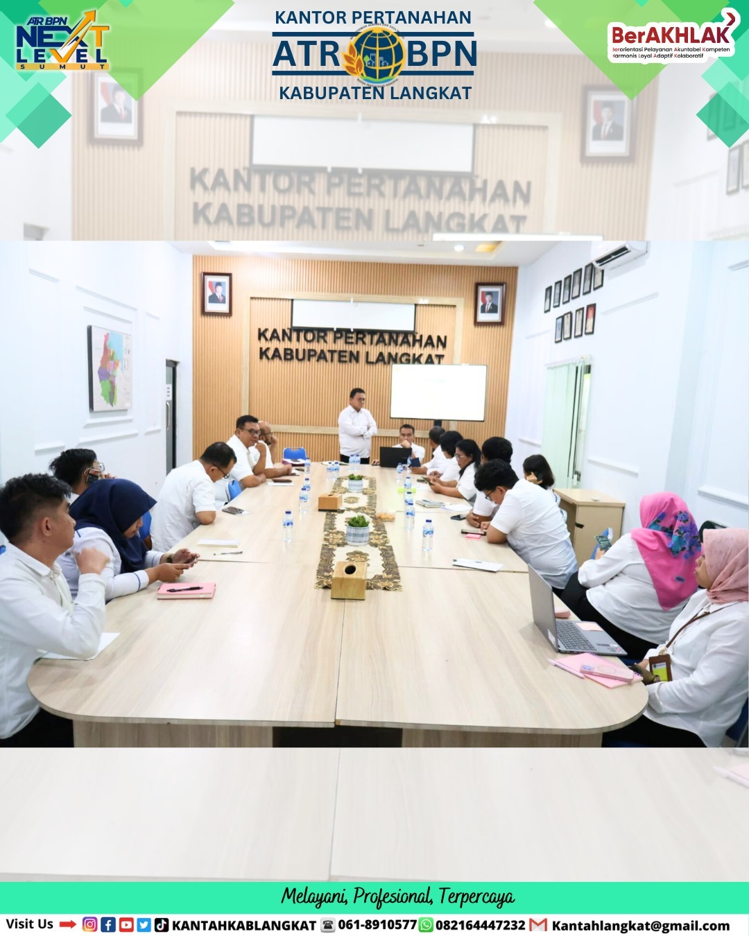 Langkat | TIME LINE NEWS IDN.com,- Dalam rangka meningkatkan kualitas pelayanan publik di bidang pertanahan, Kantor Pertanahan Kabupaten Langkat melaksanakan kegiatan monitoring dan evaluasi (monev) terhadap layanan pertanahan. Kegiatan ini bertujuan untuk menilai efektivitas pelaksanaan layanan, memastikan kesesuaian prosedur dengan ketentuan yang berlaku, serta mengidentifikasi hal-hal yang perlu diperbaiki guna mewujudkan pelayanan yang semakin optimal, transparan, dan akuntabel.
