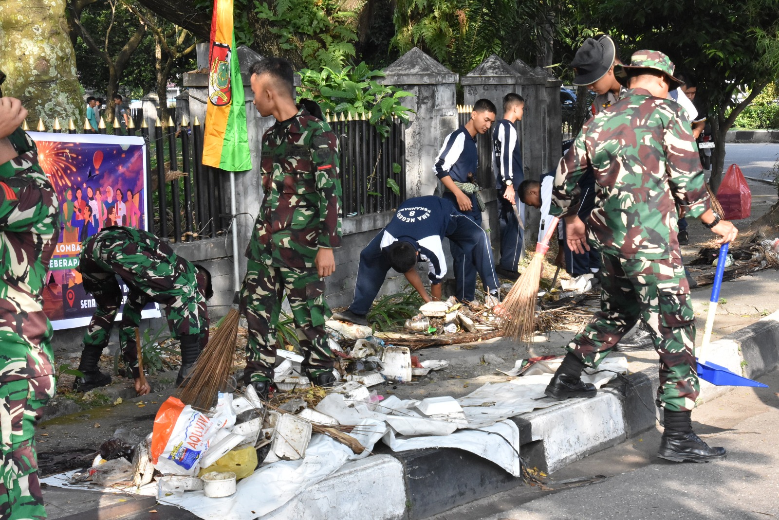 Sekitar 300 peserta terlibat dalam kegiatan tersebut yang terdiri dari unsur TNI, Polri, Pemerintah Daerah, serta pelajar. Para peserta bergotong royong membersihkan fasilitas umum, lingkungan sekitar, saluran air, serta sejumlah titik yang dinilai rawan penumpukan sampah.