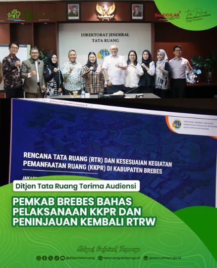 Jakarta | TIME LINE NEWS IDN.com,- Direktorat Jenderal Tata Ruang Kementerian ATR/BPN menerima kunjungan Pemkab Brebes dalam rangka audiensi pembahasan pelaksanaan KKPR untuk kegiatan berusaha, nonberusaha, dan strategis nasional di Kabupaten Brebes. Audiensi berlangsung di Ruang Rapat Bromo, Gedung Direktorat Jenderal Tata Ruang pada Selasa (03/02/2026).