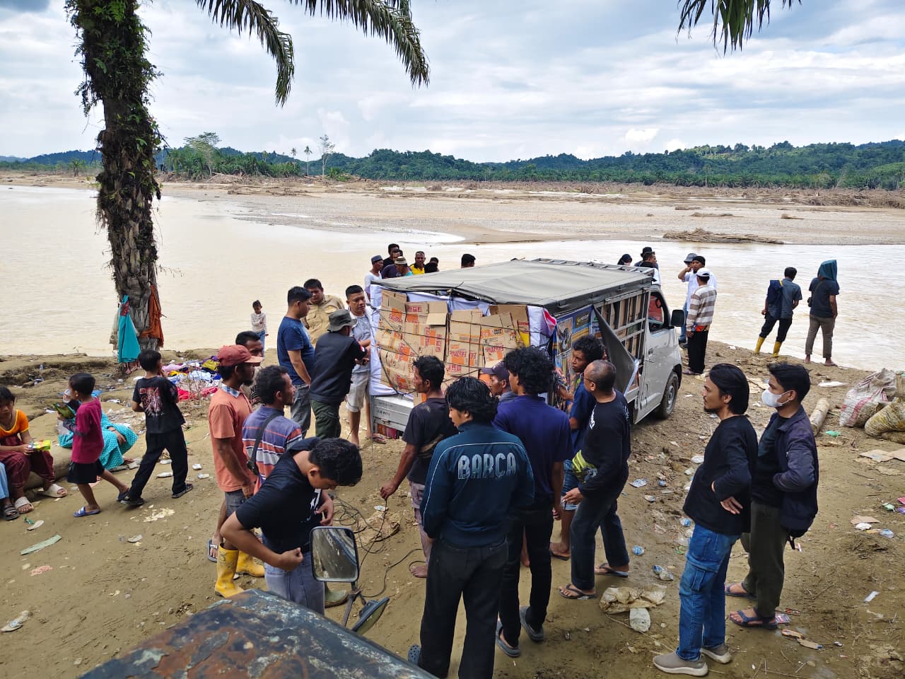 Tim relawan menyalurkan bantuan ke sejumlah desa terdampak banjir yang masih minim bantuan, antara lain Kampung Lando, Desa Jambo Rambung, Cempa Ujung, Babo, Desa Pantai Klang, dan Desa Pantai Kera.
