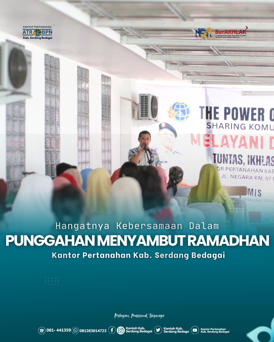 Serdang Bedagai | TIME LINE NEWS IDN.com,-Kantor Pertanahan Kabupaten Serdang Bedagai melaksanakan kegiatan punggahan dalam rangka menyambut Bulan Suci Ramadan pada Kamis (12/02/2026). Kegiatan ini diikuti oleh seluruh pegawai Kantor Pertanahan Kabupaten Serdang Bedagai dan berlangsung dalam suasana penuh kebersamaan serta kekeluargaan.