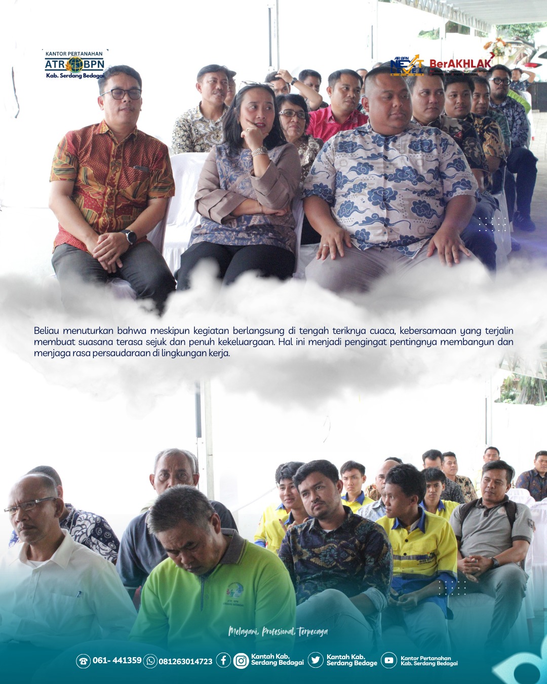 Di tengah padatnya agenda kegiatan pada hari tersebut, seluruh jajaran tetap antusias mengikuti rangkaian acara. Kepala Kantor menyampaikan apresiasi dan terima kasih kepada Ibu Andina atas persiapan kegiatan yang telah dilaksanakan dengan sangat baik. Meskipun kegiatan berlangsung di tengah teriknya cuaca, suasana tetap terasa hangat dan sejuk karena kuatnya rasa kebersamaan yang terjalin di antara seluruh pegawai. Hal ini menjadi bukti bahwa nilai kekeluargaan yang dibangun di lingkungan kerja mampu menciptakan suasana yang nyaman dan harmonis.
