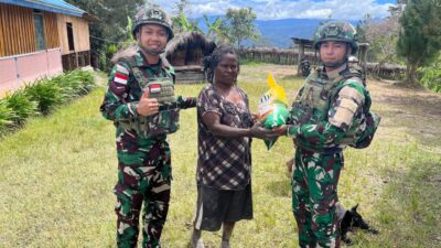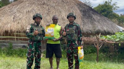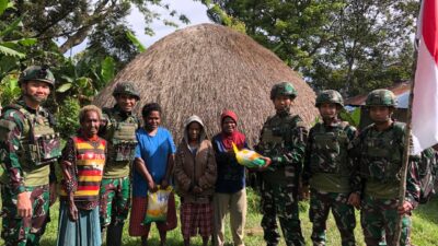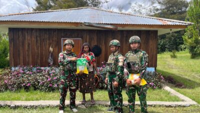 Jayawijaya | TIME LINE NEWS IDN.com,-Sebagai wujud kepedulian terhadap masyarakat di wilayah pegunungan yang kerap mengalami keterbatasan pasokan bahan pangan, TNI bagikan paket beras Gratis di wilayah penugasan. (11/11/2025).