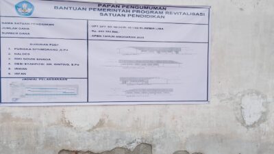Foto : Papan Informasi Sekolah Bantuan Revitalisasi SDN 101752 dari APBN Tahun 2025 Senilai Rp980.304.588.(TIME…