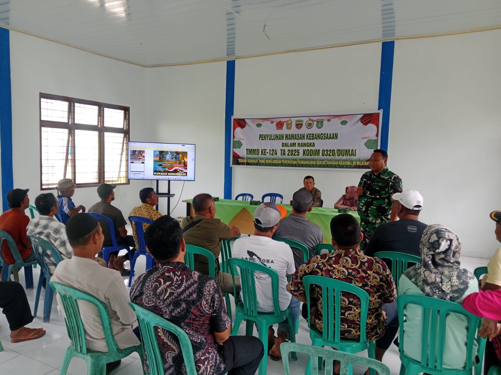 DUMAI | Timelinnewsidn.com-Program TNI Manunggal Membangun Desa (TMMD) ke-124 Kodim 0320/Dumai di Kelurahan Bukit Kayu Kapur tidak hanya berfokus pada pembangunan fisik, namun juga memberikan perhatian pada kegiatan non-fisik. Salah satu kegiatan penting tersebut adalah penyuluhan Wawasan Kebangsaan (Wasbang) yang digelar pada Jumat, 10 Mei 2025 di Aula Kelurahan Bukit Kayu Kapur, Kecamatan Bukit Kapur, Kota Dumai.