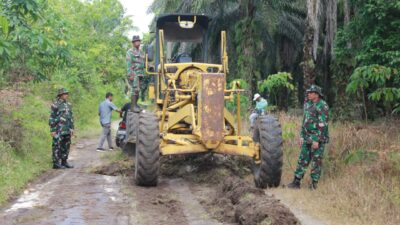Pengerasan Jalan Sukamaju Capai 30 Persen, TMMD Kodim O320 Dumai dinilai Sukses. (Foto : Timelinnewsidn/Ist)