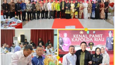 Danrem 031/Wira Bima Brigjen TNI Sugiyono di dampingi istri, menghadiri acara Kenal Pamit Kepala Kepolisian…