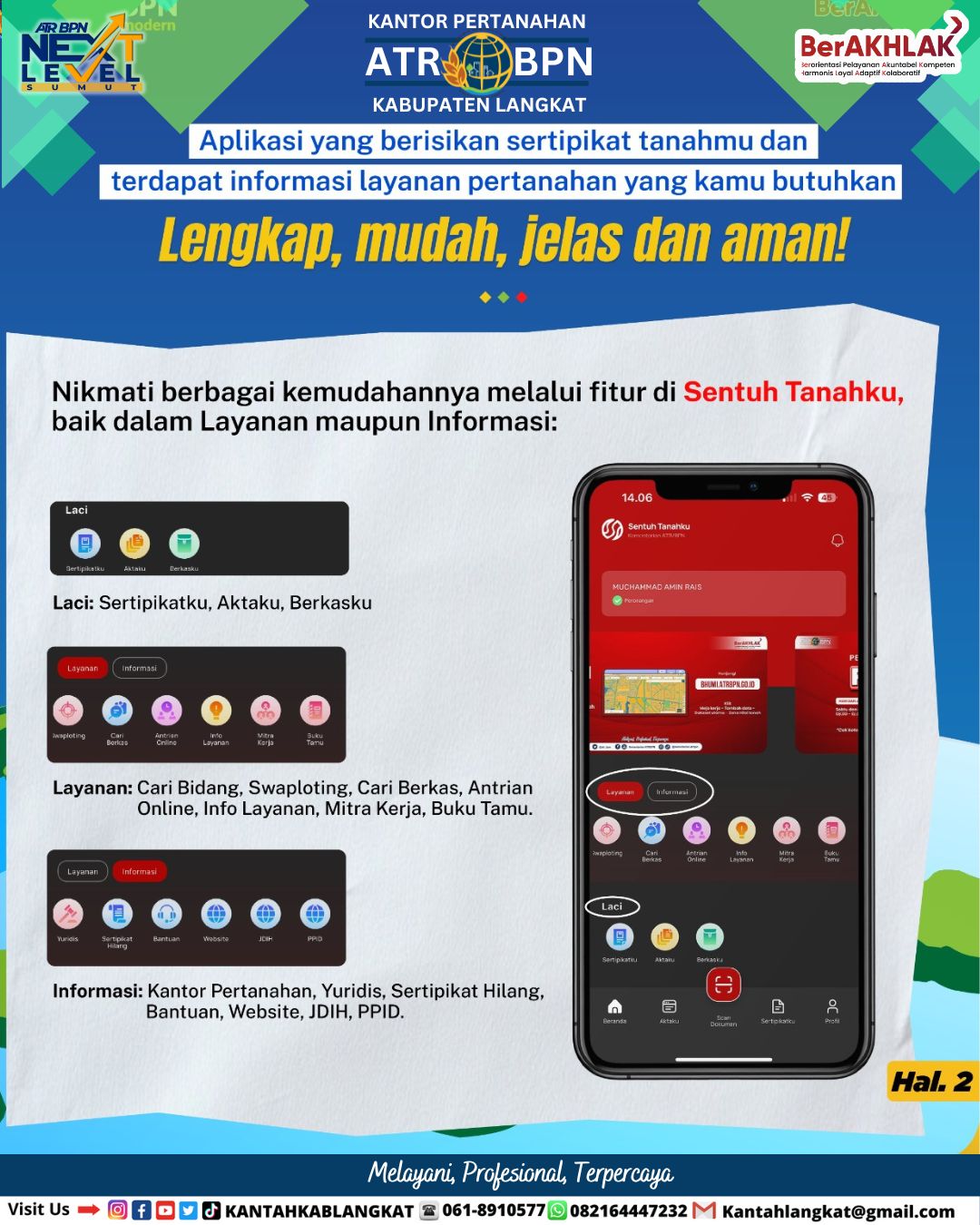 Di wilayah Kabupaten Langkat, pemanfaatan aplikasi ini semakin dioptimalkan sebagai bagian dari upaya peningkatan kualitas pelayanan kepada masyarakat. Melalui Sentuh Tanahku, masyarakat dapat memantau status berkas, memperoleh informasi sertipikat, mengecek persyaratan layanan, hingga mengakses berbagai informasi pertanahan lainnya langsung dari perangkat seluler tanpa harus datang ke kantor pertanahan.